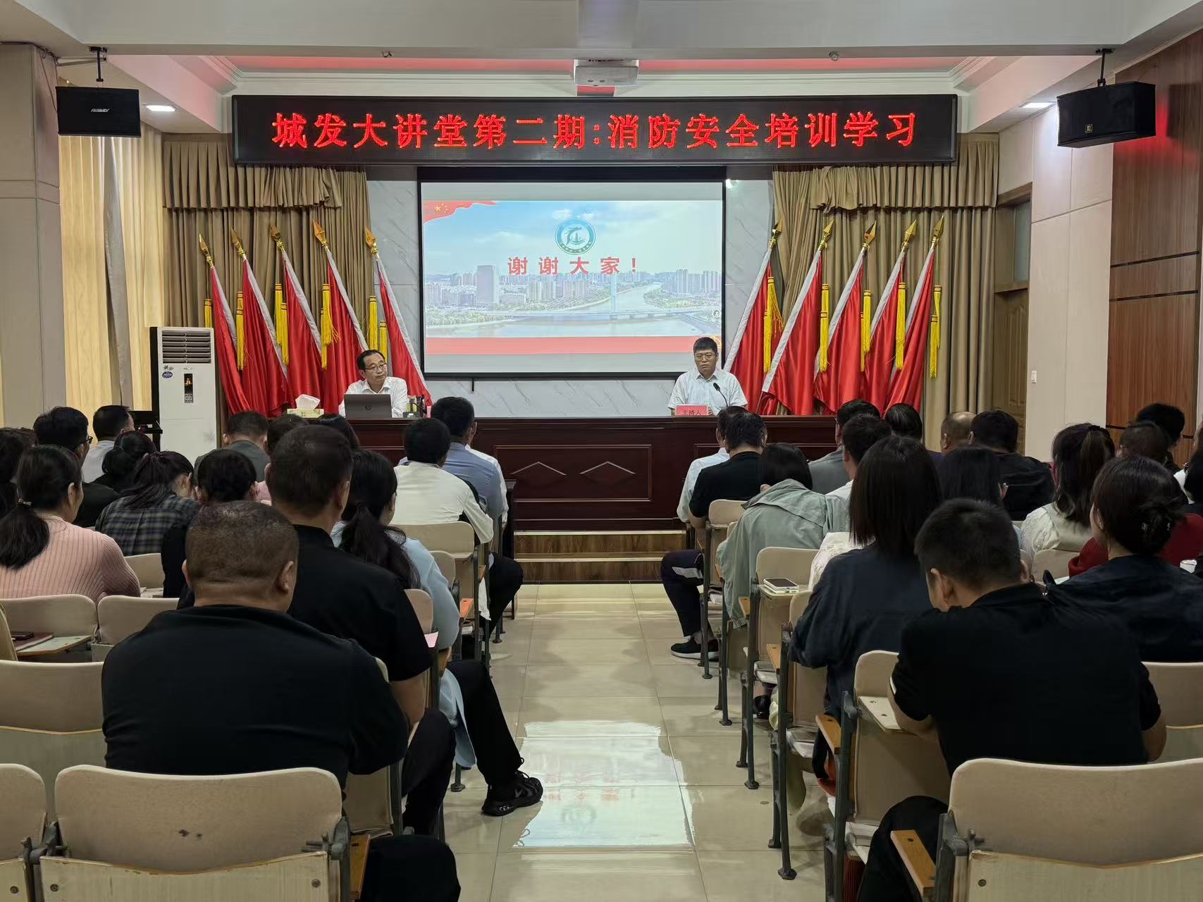 为切实做好中秋、国庆“双节”期间安全工作,进一步提升集团安全生产管理水平,切实提升全员安全责任意识与履职能力,9月26日上午,城发大讲堂第二期暨消防安全培训开讲,集团邀请滕州市安委会办公室副主任、市应急管理局党委委员、应急管理综合行政执法大队大队长贾福永作专题讲座,集团党委委员、副总经理孔军主持。会上,贾大队长以“筑牢安全防线 守住安全底线”为主题,从近期的安全事故案例警示出发,深刻剖析事故原因及惨痛教训,为参会人员敲响了安全警钟;深入解读习近平总书记关于