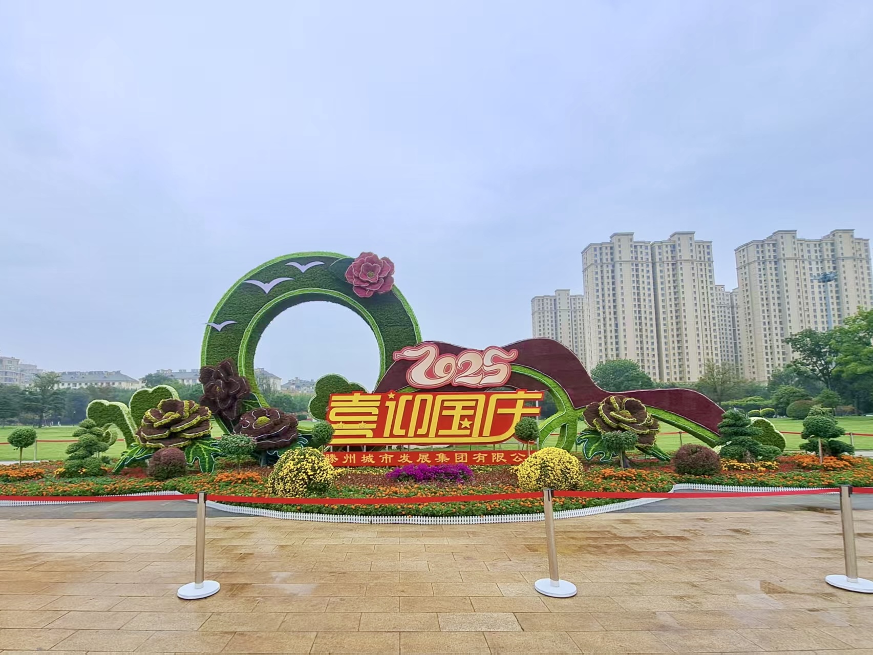为热烈庆祝中华人民共和国成立76周年,连日来,城发集团提前部署,倾心打造“礼赞新时代、奋进新征程”主题绿雕,以恢弘气象、精巧构思与深情寓意,为全市人民营造祥和、喜庆、热烈的节日氛围。整个造型长20米、高6.5米,在色彩搭配上,以红色、黄色为主色调,精心搭配鸡冠花、一串红与孔雀草等3万余株优质花卉。在施工过程中,结合花卉颜色、形态及高度,采用分层布置工艺,对每株花卉进行精准定位摆放,使花卉呈现出层次分明、错落有致的艺术效果。既展现了新时代的蓬勃活力,也寓意着